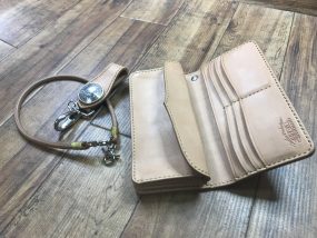 今回は財布のオーダーに合わせてコンチョ付きのキーホルダーと極太ウォレットコードも